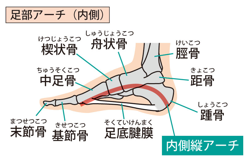 これが、よく言われる足底筋膜炎(足底腱膜炎とも言う)と言われるものになります。足に負担をかけないためにはアーチをキープしておく必要があるため、そのサポートに今回のソックスが選ばれたのです。